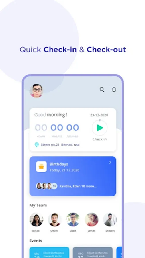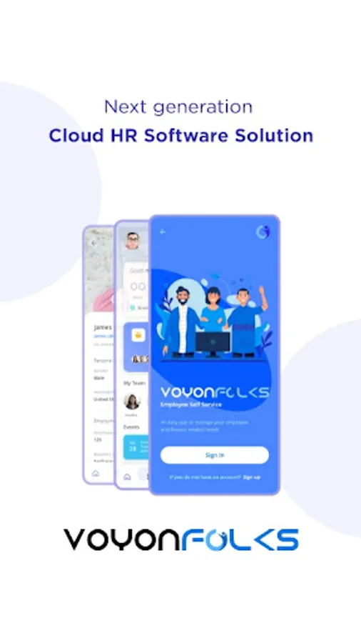 The aim of Voyon Folks mobile app is to enable employees to quickly access your organizational employee profile, to do instant check-in and check-out and to stay connected at all times from your apple or android phones.