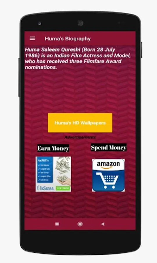 Huma Saleem Qureshi (Born 28 July 1986) is an Indian Film Actress and Model, who has received three Filmfare Award nominations.