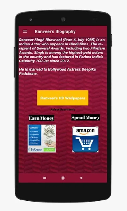 Ranveer Singh Bhavnani (Born 6 July 1985) is an Indian Actor who appears in Hindi films. The recipient of Several Awards, including two Filmfare Awards, Singh is among the highest-paid actors in the country and has featured in Forbes India's Celebrity 100 list since 2012.