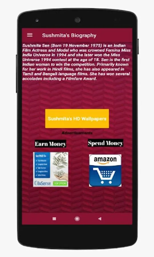 Sushmita Sen (Born 19 November 1975) is an Indian Film Actress and Model who was crowned Femina Miss India Universe in 1994 and she later won the Miss Universe 1994 contest at the age of 18. Sen is the first Indian woman to win the competition. Primarily known for her work in Hindi films, she has also appeared in Tamil and Bengali language films. She has won several accolades including a Filmfare Award.