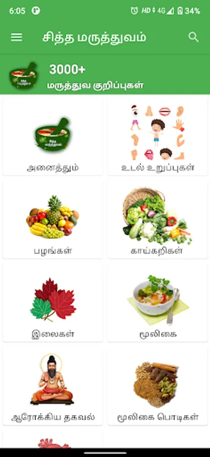 3000 கும் அதிகமான தமிழ் மருத்துவ (சித்த வைத்தியம்) குறிப்புகளை உள்ளடக்கிய பயன்பாடு. எளிதாக பயன்படுத்தும் வகையில் உருவாக்கப்பட்டுள்ளது.