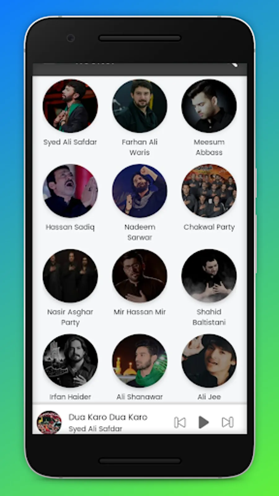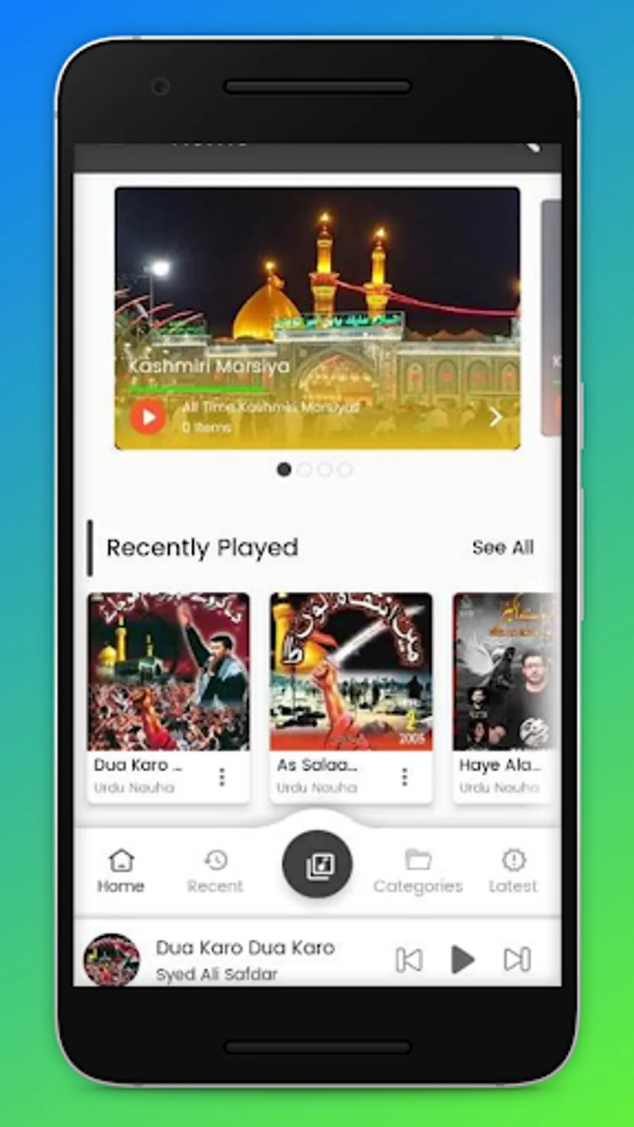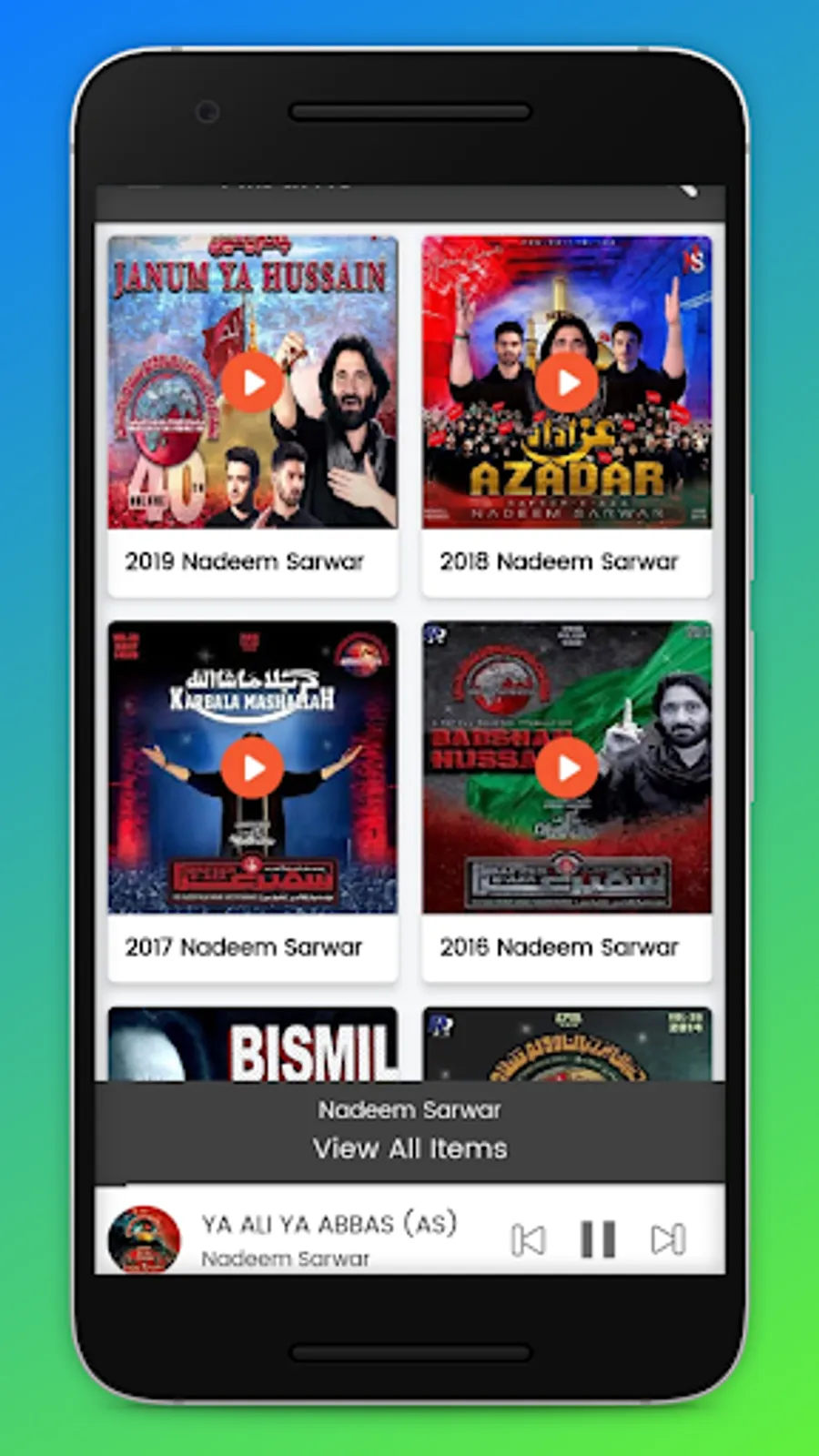 Azadaari Kashmir is an online mp3 streaming app which contains, Nauhas, marsiyas , manqabats , ziyaarat in various Languages Like : Kashmiri , Urdu, Punjabi, Persian, Arabic. The Azdaari Kashmir is developed specially for users of Kashmir as it contains kashmiri content of Marsiyas. This app contains Nauhas Of Famous Nauha Khans Like Nadeem Sarwar, Mir Hassan Mir, Syed Ali Safdar, Farhan Ali Waris, Meesum Abbass, Chakwal Party, Shahid Baltistani, Hassan Sadiq, Nasir Asghar Party, Irfan Haider, Ali Shanawar, Ali Jee, Hashmi Sisters, Ali Deep Rizvi, Katri Bawa and many more.