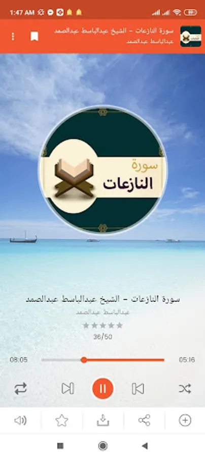 The application contains the recitations of the Noble Qur’an with the narration of Hafs from Asim.