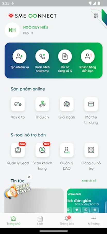 SMEConnect App is an internal application for VPBank SME employees and is oriented to become an "All in one" application.