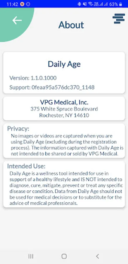 NOTE: Daily Age is a wellness tool intended for use in support of a healthy lifestyle. It is not intended for use in the diagnosis, cure, mitigation, prevention, or treatment of disease or other health conditions.