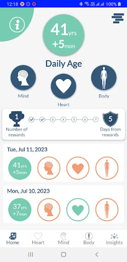 3.Progress Tracking: The app enables users to track their physiological age over time, allowing to observe the impact of lifestyle changes and interventions on their overall health.
