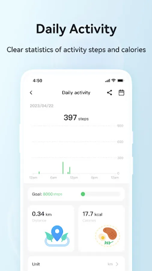 Step counting: Set daily step goals and easily track the number of steps taken by syncing with the smartwatch.