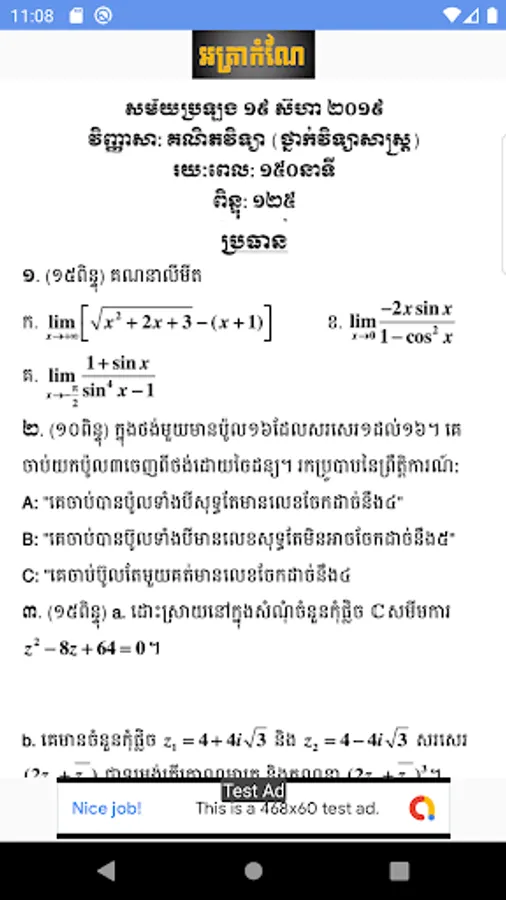 This App is the compilation of all grade 12 exam paper in Cambodia from the previous academic years. It will help 12th graders to pursue better in their upcoming national exam.