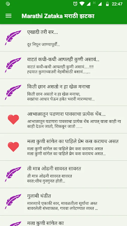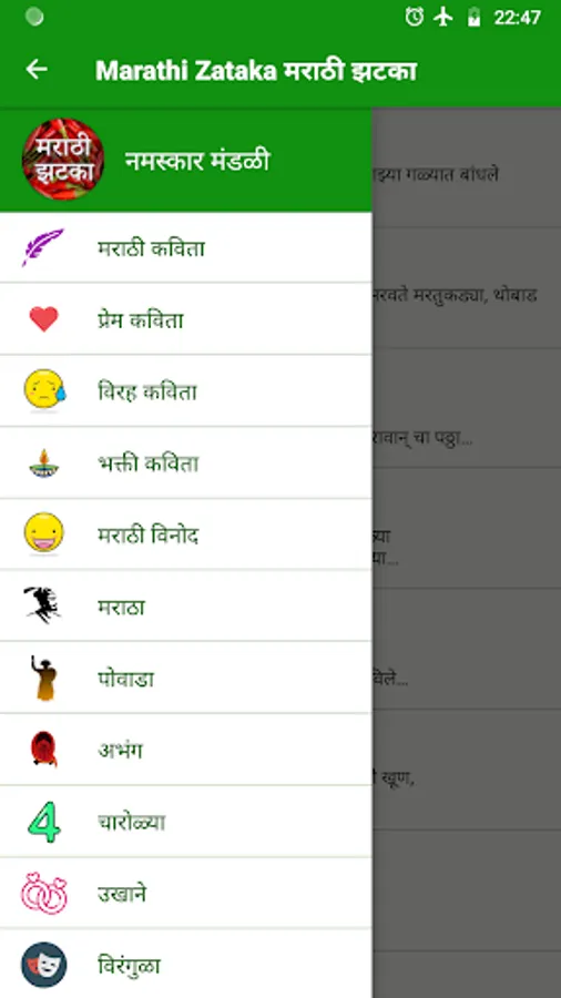 It has content like Marathi Kavita, Vinod, Grafity, Powada, Marathi poetry, jokes, stories etc. (मराठी कविता, विनोद, ग्रॅफिटी, पोवाडा, मराठी कविता, विनोद, कथा)