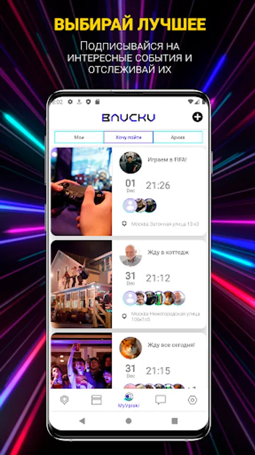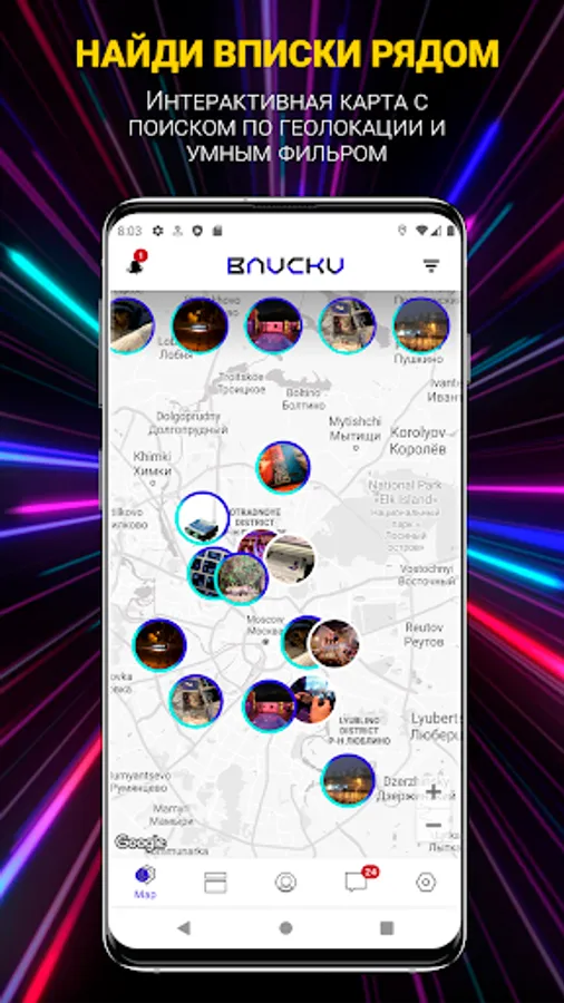 Create Vpiski in our application or Join Vpiski on the interactive map, chat in group chats, and don't waste any more time looking for a hangout! Just create your own account and collect guests!