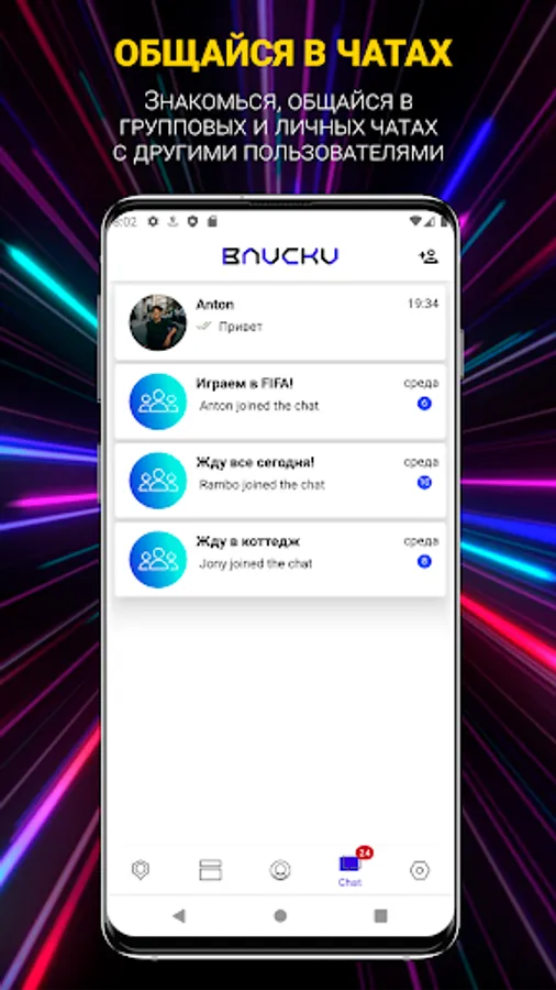 A couple of clicks and your event will already be available to all users. Communicate with guests, write to those you want to meet. Each account has its own group chat, where all guests can chat online.