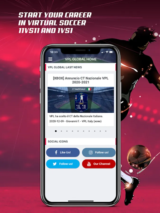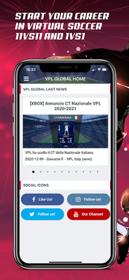 VIRTUAL PROFESSIONAL LEAGUE is the platform where 11vs11 and 1vs1 virtual soccer becomes e-Sports. Through our platform, we provide an immersive experience for Videogamers passionate about Virtual Soccer.