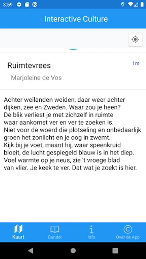 In this app, cultural treasures can be found on location on routes in various places in the Netherlands and abroad. The Interactive Culture Foundation places these together with local initiatives. New routes appear regularly and the existing routes are being expanded, so keep an eye on the app for updates. You can always find the content using GPS technology. You can find the locations by searching or by following a route.