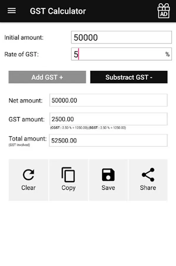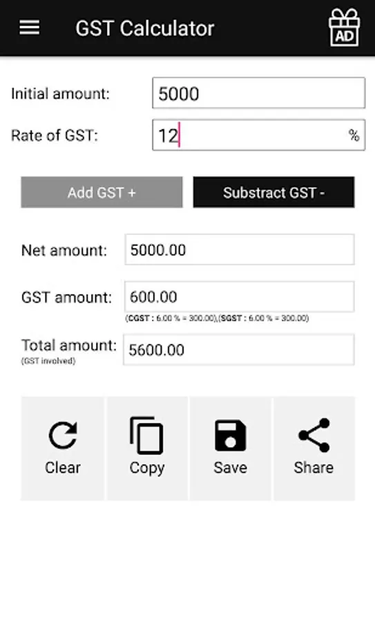 We Give Two Button ADD GST and SUBSTRACT GST.