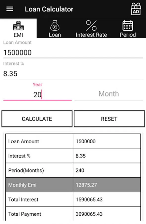 Citizen Calculator also has feature of Loan Calculator by which you can calculate Loan EMI, Loan amount, Loan interest rate, Loan period, Loan Installment Amount and Calculate EMI on monthly and Yearly basis..