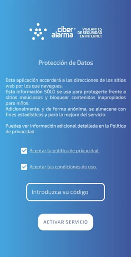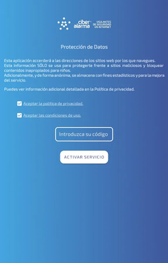 Ciberalarma® Safe Browsing to protect against threats while browsing the Internet.