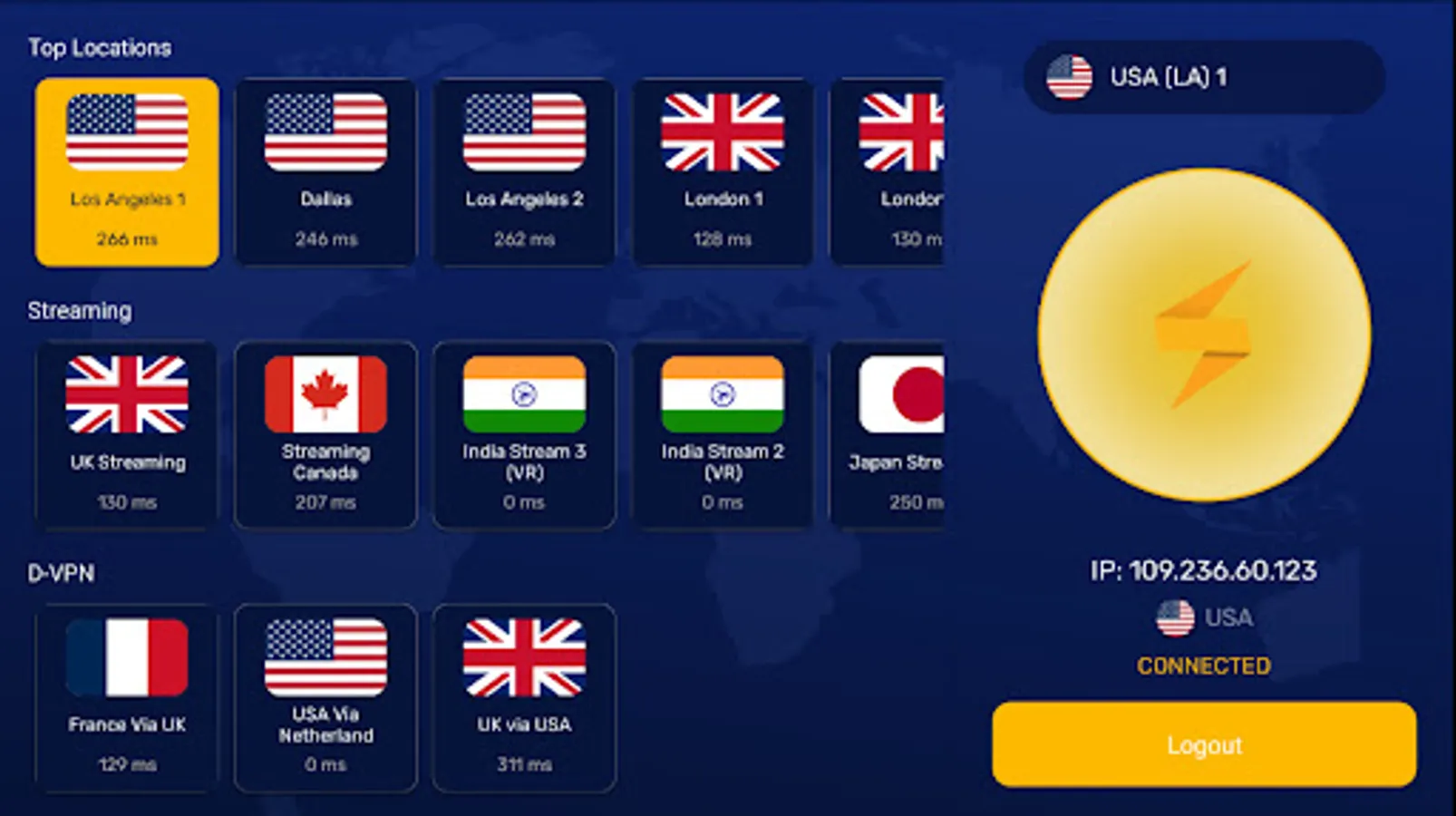Fastest VPN privacy solution is designed to protect your internet suffering with ease of use Android application. It comes preconfigured right out-of-the-box. So when you launch the first time, you don’t need to set it up. The app carries a visually-appealing interface that is intuitive & easy to navigate with a seamless flow of data.
