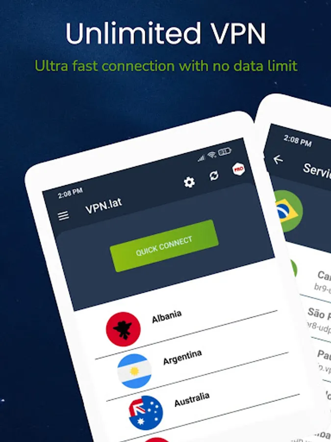 · VPN.lat for Android gives you direct and simple access to your favorite websites without censorship or blocking.