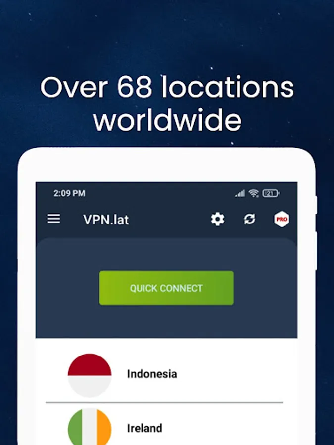 VPN.lat is a free VPN service for Android with servers in 68 countries, it does not keep logs and allows you to browse the internet safely.