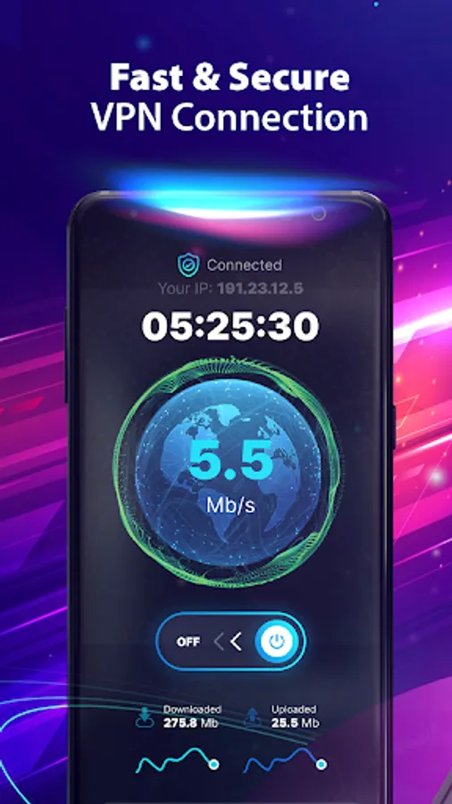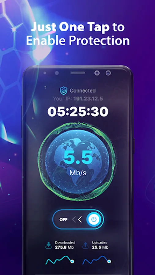 🛡️ ProxyShield VPN allows you to track the downloading speed and data transfer amount, as well as the total volume of downloaded and uploaded data.