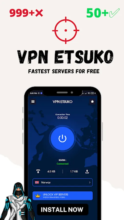 VPN ETSUKO Fastest vpn for gamers and normal users.