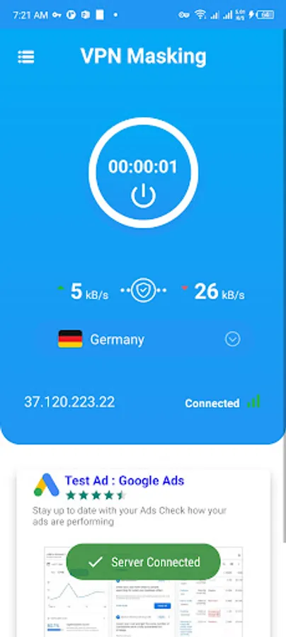 VPN Masking provides a free VPN service that is lightning-fast. Simply click one button and you can access the Internet securely without any configuration.