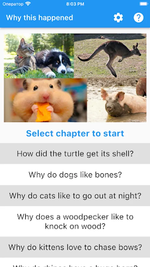 33 fairy tails about animals around us. Each word can be explained by pressing.