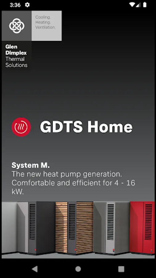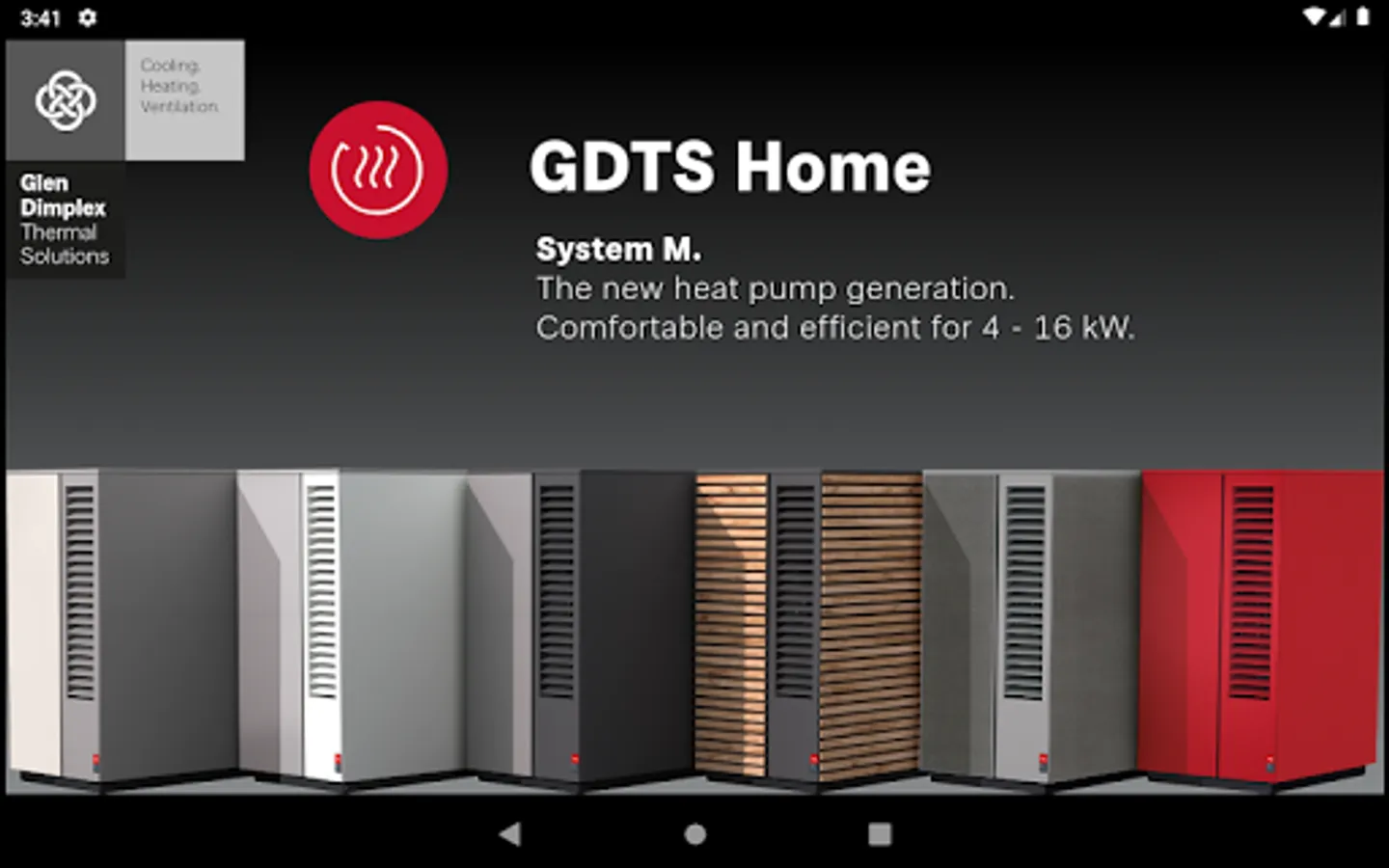 The minimum system requirement for using the GDTS Home App is Internet access, a System M 2017 Dimplex heat pump or later. The app requires 6.0 or higher. The smart device must have active internet access for use.
