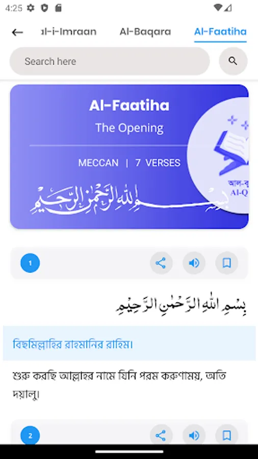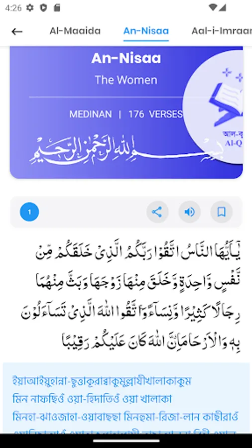 পবিত্র আল-কুরআন বাংলা উচ্চারণ এপ্লিকেশনে আপনি সূরা পাঠ করতে পারেন এবং সূরা গুলির পূর্ণাঙ্গ তাফসীরও পাবেন।