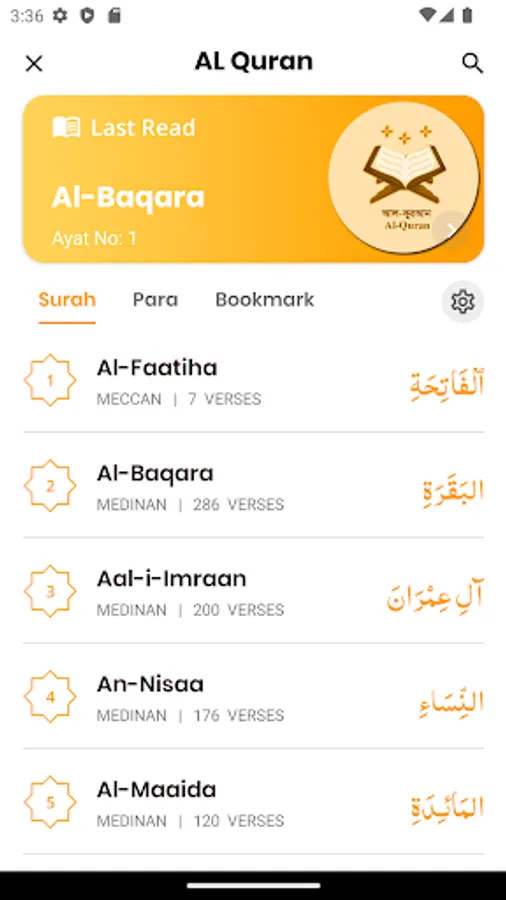 - পছন্দমত আয়াত বা সূরা বুকমার্ক করা