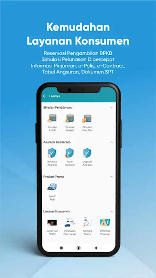 3.Customer services according to your needs, such as customer information, simulation of accelerated payments, BPKB collection reservations without having to queue first.