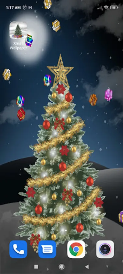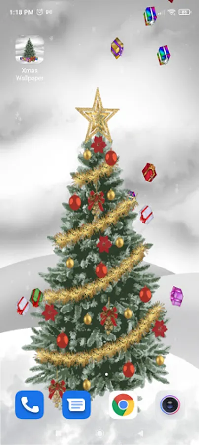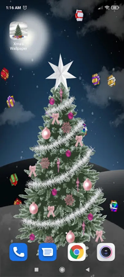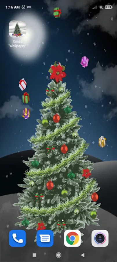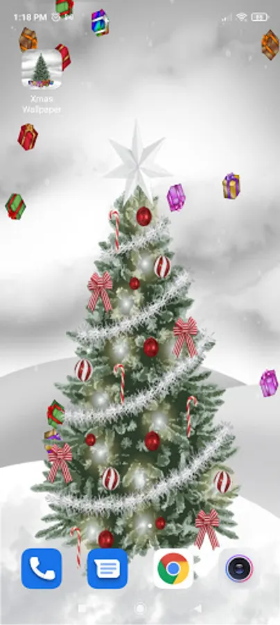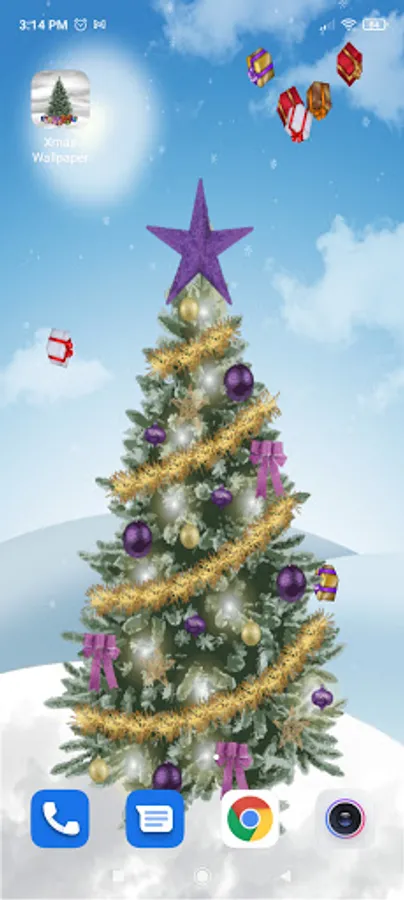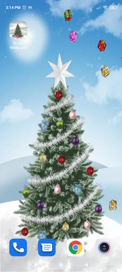 Xmas Live Wallpaper will let you customize basically everything. Change number, speed, rotation and color of presents, number, speed and rotation of flakes. It is interactive and will respond on touch. When the present is touched, the tree will change its decoration coorespondently to the present touched. Example: If the touched present was red/white, the trees decoration will become red and white.
