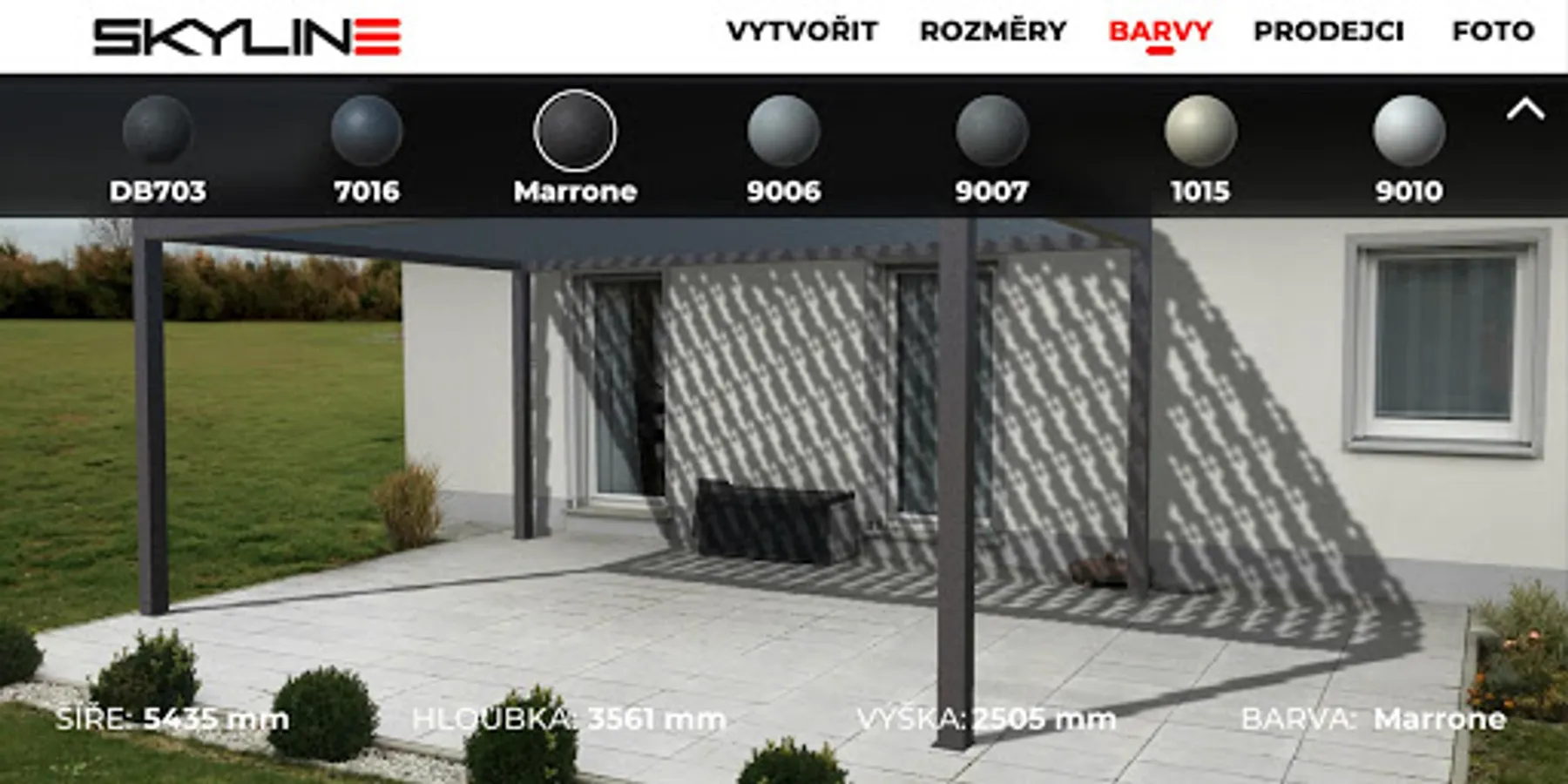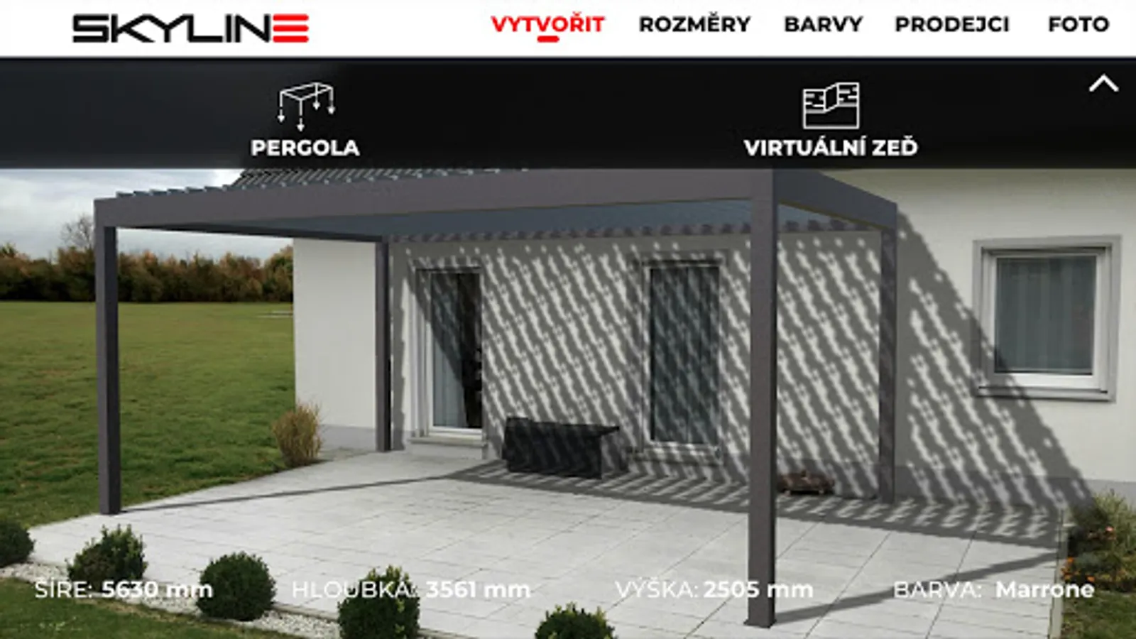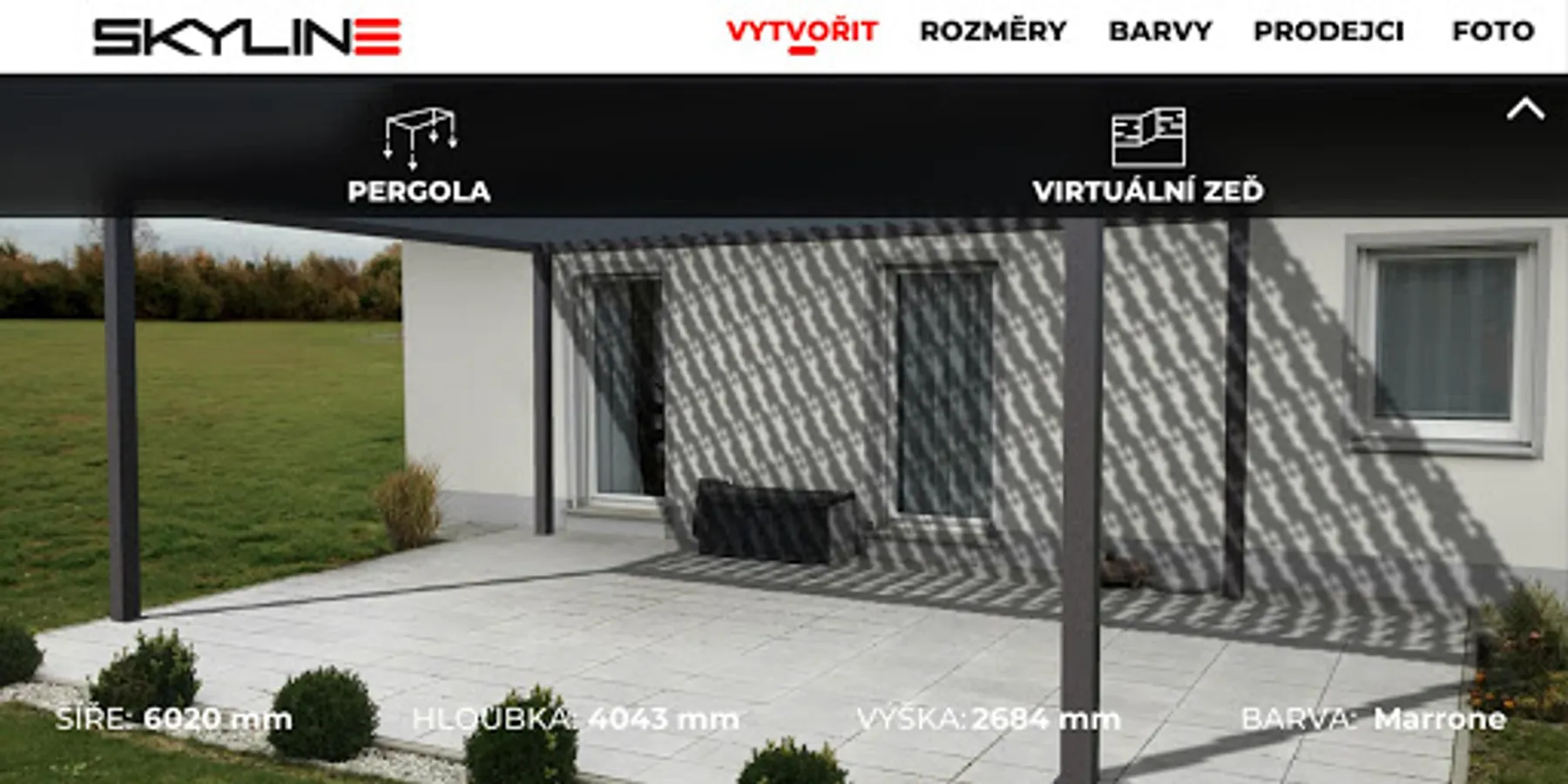 In the MyPergola application, explore the range of AL Pergoly s. r. o. Thanks to augmented reality, try the SKYLINE and SKYSPACE pergolas in any space.