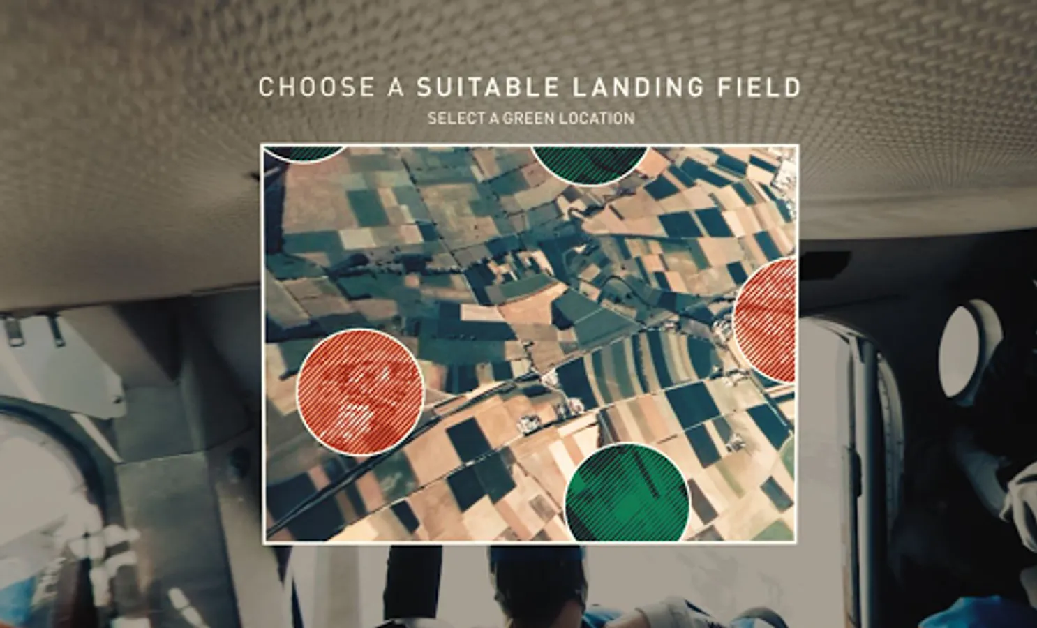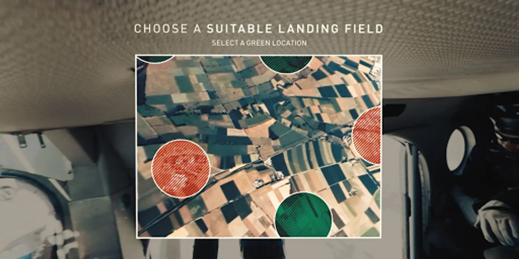 A highlight in the interactive version is triggering the parachute jump. An interaction must be carried out at the right time which contributes to an increased tension. If the user interacts wrong he is thrown back in the plot.