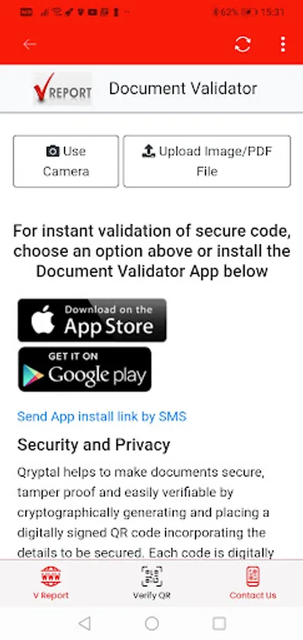 This app scans and validates all secure QR codes issued by V Report.