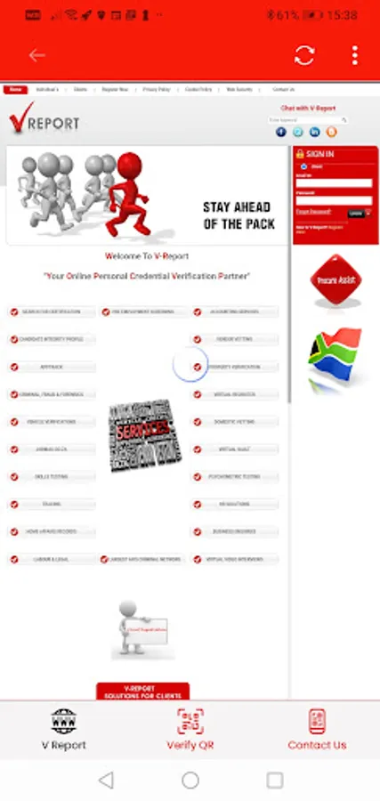 When proceeding to the V Report website only clients of V Report will have login access. To become a V Report c;lient please call us on 2711 432-4416.