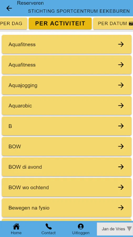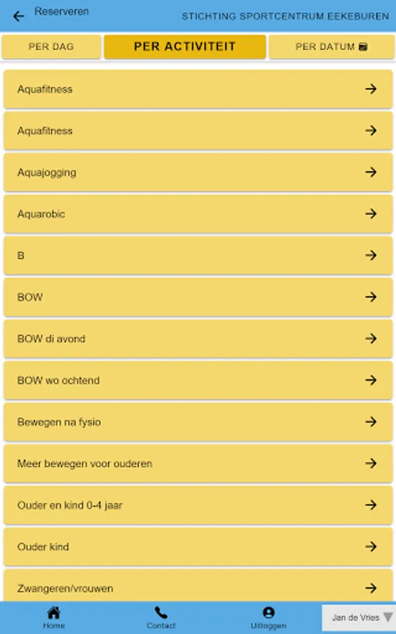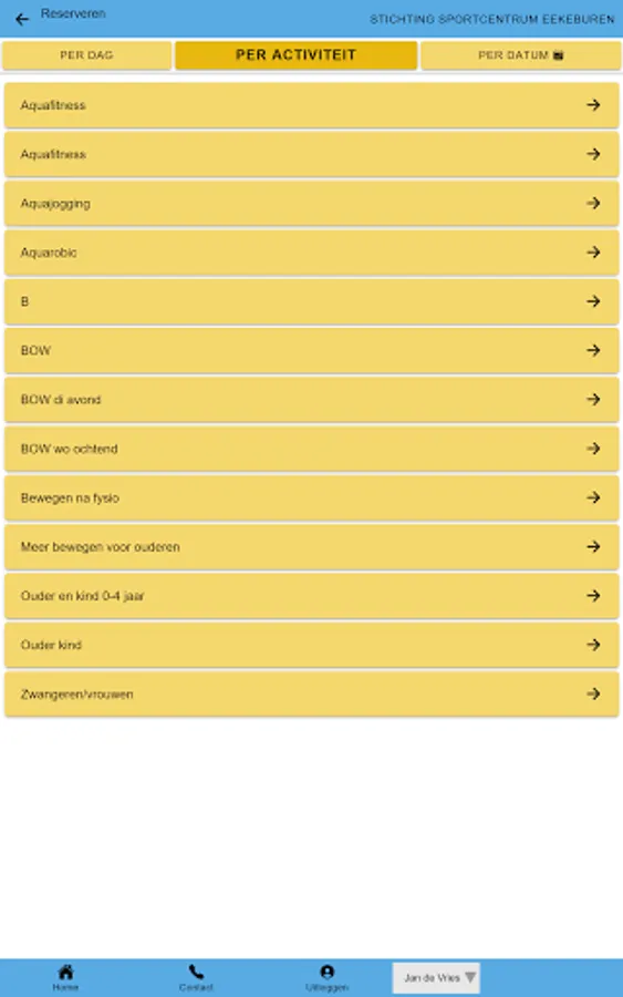 All your data and products that you have at Sportcentrum Eekeburen, clearly arranged in an app.