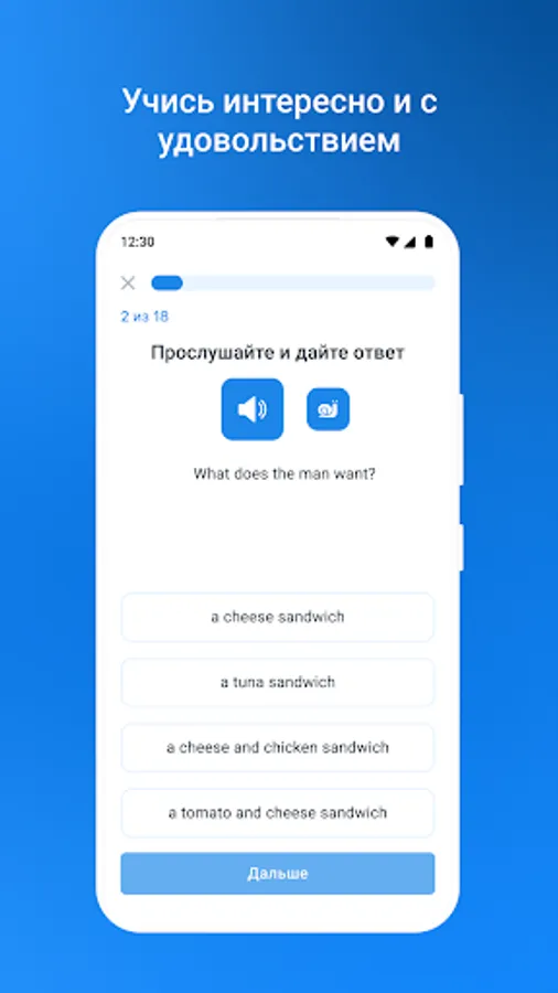 An important feature of the app is its interactive learning format. You can not only get theoretical knowledge, but also practice it in real time, thanks to a variety of tasks and exercises. This will improve your vocabulary and improve your understanding of English grammar and sentence structure.