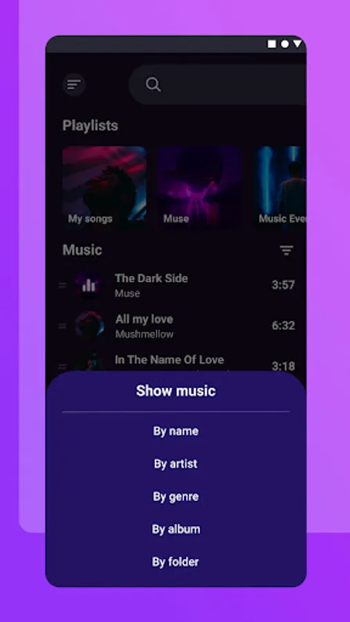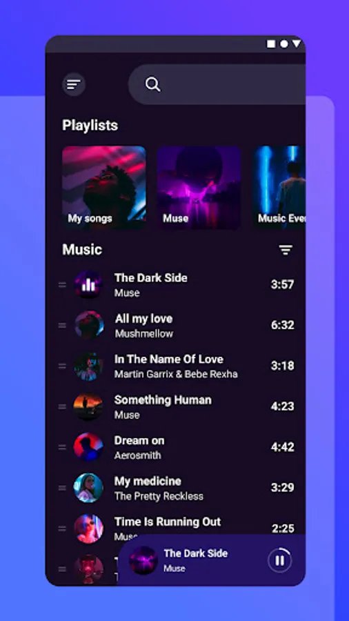 The UMP application allows you to easily manage all your music, has a quick search and supports playback in all music formats: MP3, WAV, MP4, FLAC, 3GP, OGG, etc. It is a very fast music player that takes up very little memory and provides sound music at the highest level!