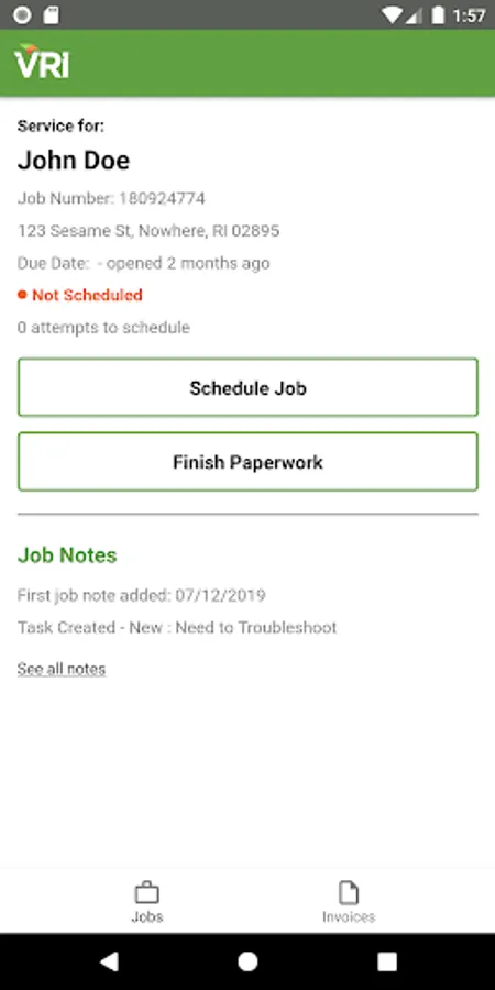 VRI HSR App features include the ability to schedule visits with clients, manage associated paperwork, generate invoices for completed work, and complete installations.