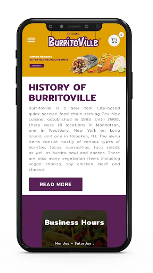 BurritoVille is a New York City-based quick-service food chain serving Tex-Mex cuisine, established in 1992. Until 2008, there were 16 locations in Manhattan, one in Westbury, New York on Long Island, and one in Hoboken, NJ. The menu items consist mostly of various types of burritos, tacos, quesadillas, taco salads as well as burrito bowl and nachos. There are also many vegetarian items including vegan chorizo, soy chicken, beef and cheese.