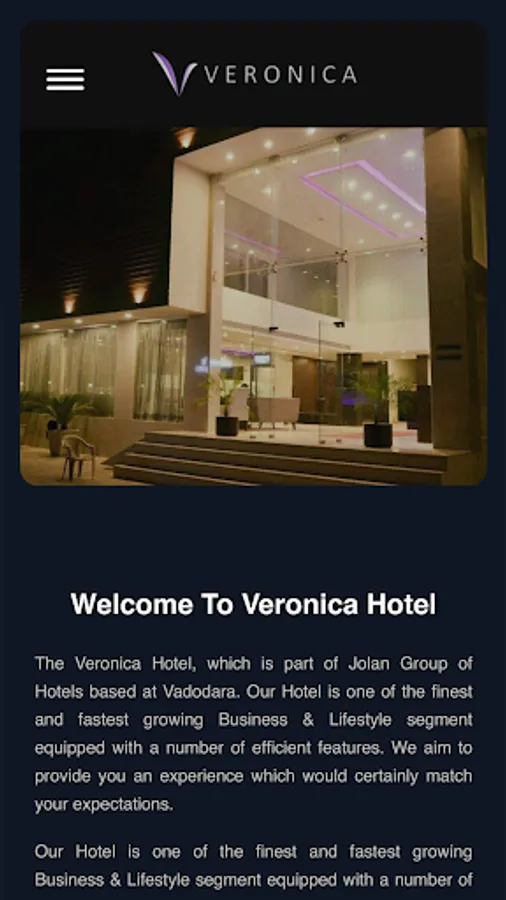 The Veronica Hotel, which is part of Jolan Group of Hotels based at Vadodara. Our Hotel is one of the finest and fastest growing Business & Lifestyle segment equipped with a number of efficient features. We aim to provide you an experience which would certainly match your expectations.