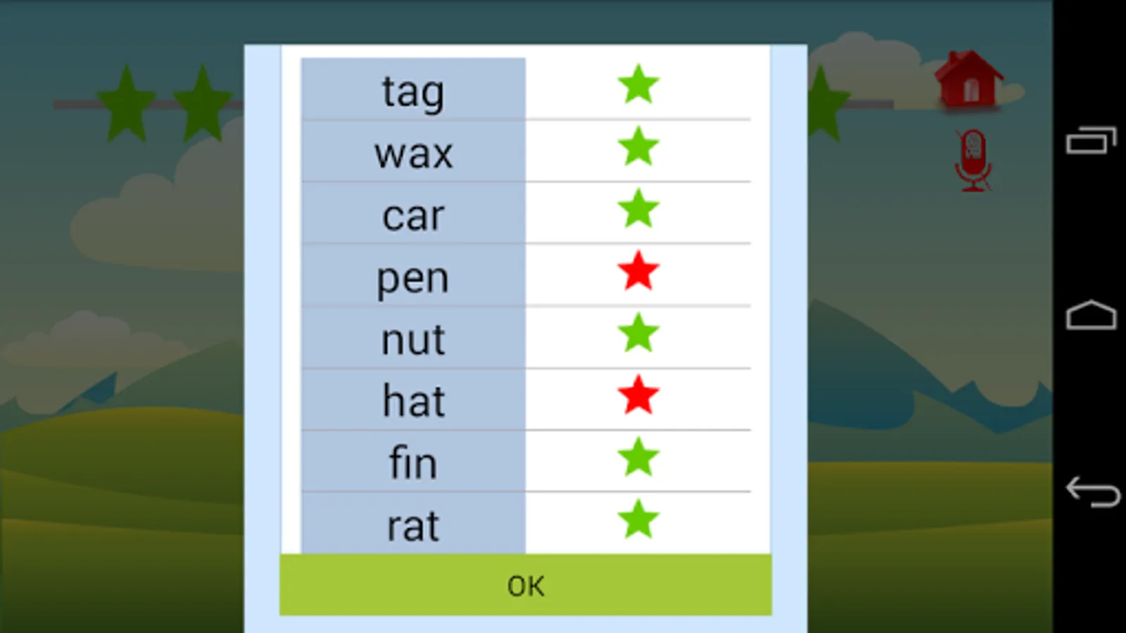 This basic and simple educational application developed in collaboration with kindergarten teachers lets your child develop an understanding of English character sounds/phonics and construction of 3 letter words. It enables the child to learn and test progress of three letter word recognition and pronunciation by utilizing speech recognition.