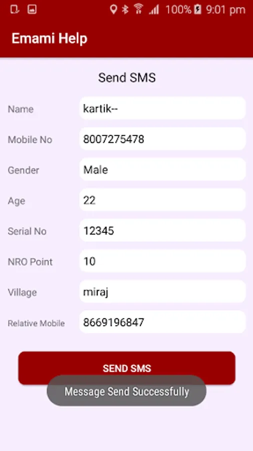 A user needs to register. After successful registration and verification of mobile number user will get an OTP. After OTP confirmation User needs to scan a QR code to get prospect details of a scanned QR code.  After clicking on send message button current location will be shared with the relative person's mobile number.