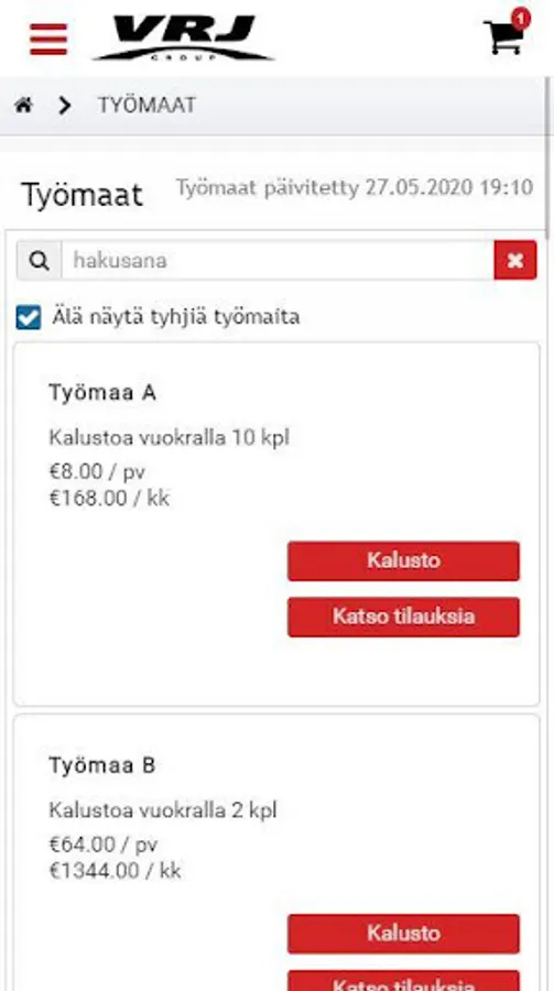 Manage equipment by job site. Place return orders for equipment or equipment orders on site.
