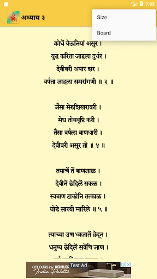 Shri Devi Mahatmyam is a very Pious and Holy Grantha. This Grantha is a translation of original Sanskrit Shri Durga Saptashati, which is from Markandeya Purana. The translation is nicely done by shri Ram Baba Vernekar who was from a renouned Aginihotri family. He was very wise and learned and his knowledge of Sanskrit was beyond normal man's capacity.