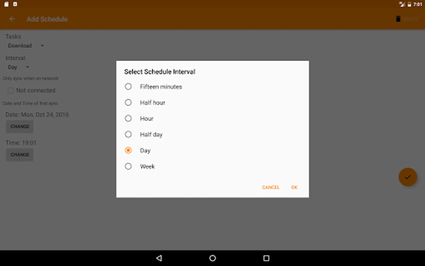 - Schedule file transfers, e.g. once a day or once a week. The scheduling is inexact to save battery.