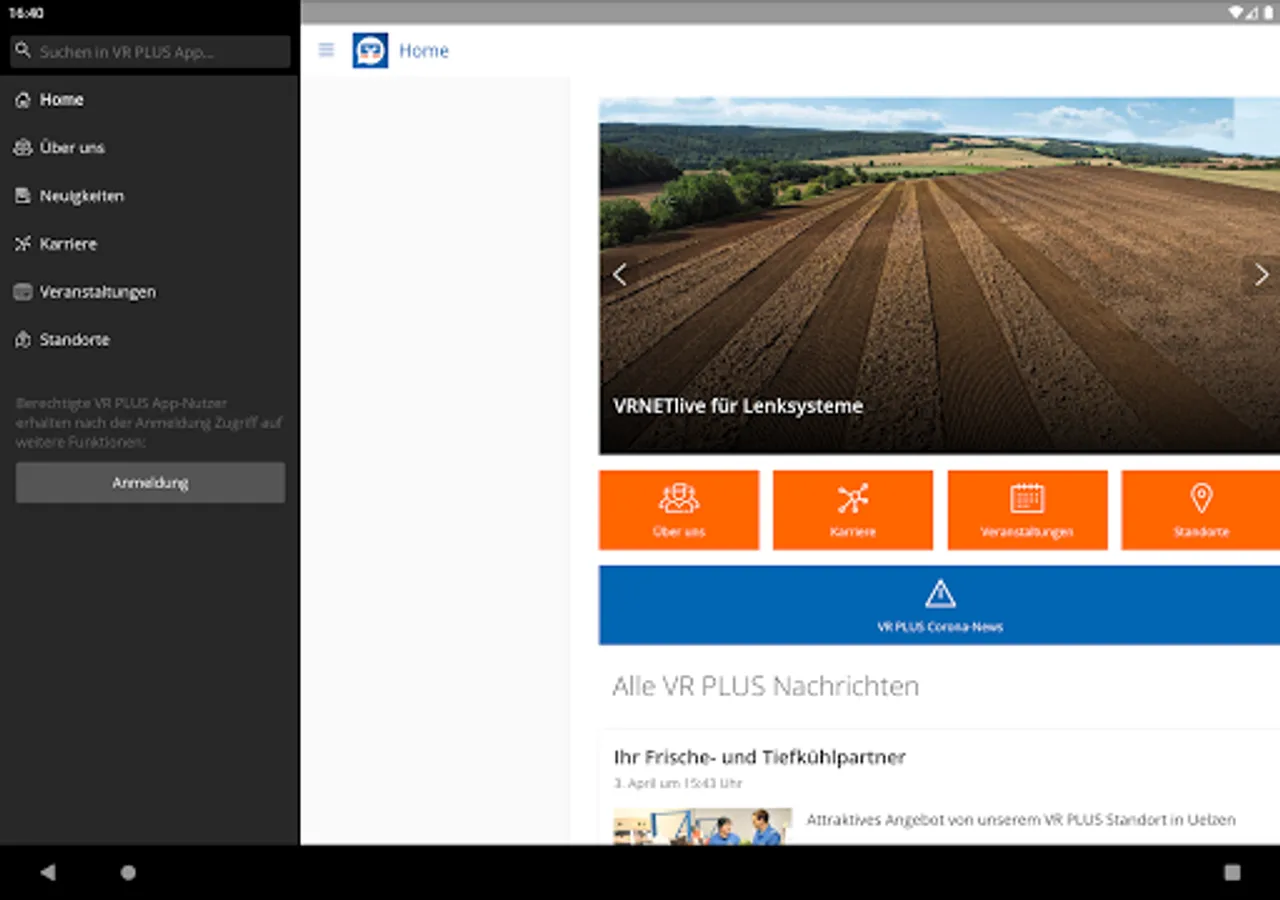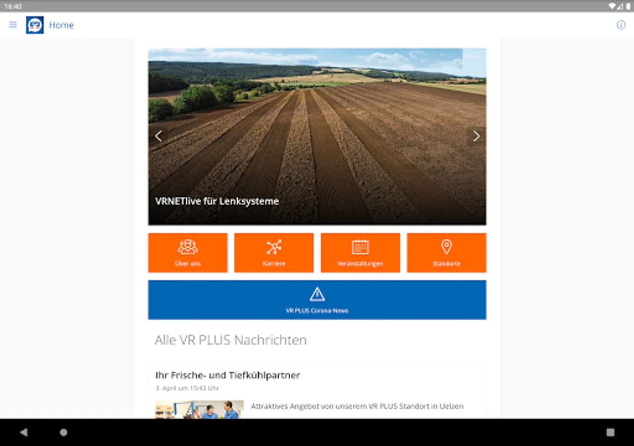 VR PLUS App is the central communication app of VR PLUS Altmark-Wendland eG, one of the largest mixed-economy credit unions in Germany. The app provides up-to-date information about the company with its business areas banking, agriculture, energy, market and technology. The offer is supplemented by access to the VR PLUS career portal and the current event calendar. Additional information is available to employees.