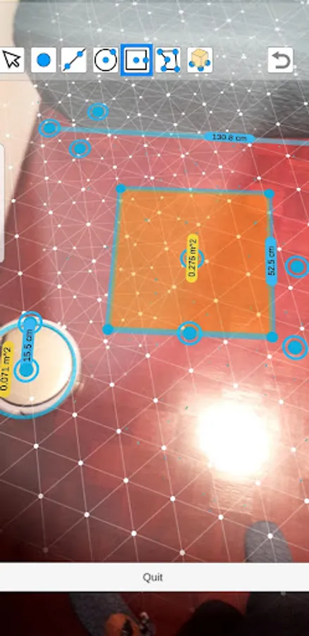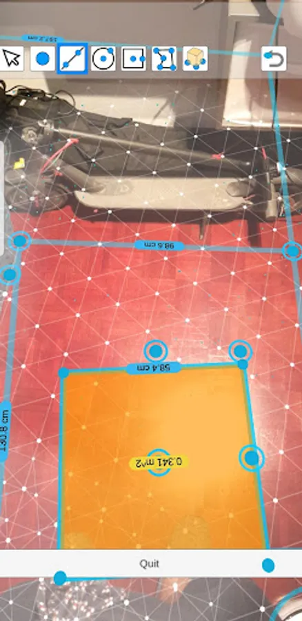 3.3.) Use "square" icon and tap blue dots once again to measure the surface