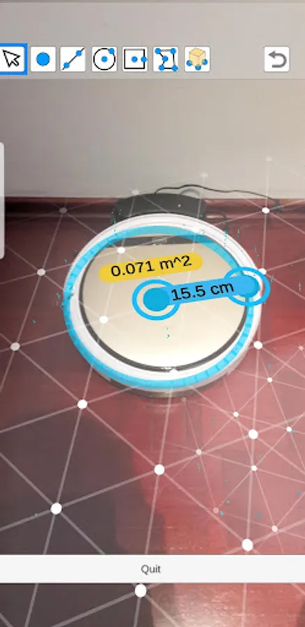 3.2.) Use "circle" icon and tap blue dots once again to measure the radius
